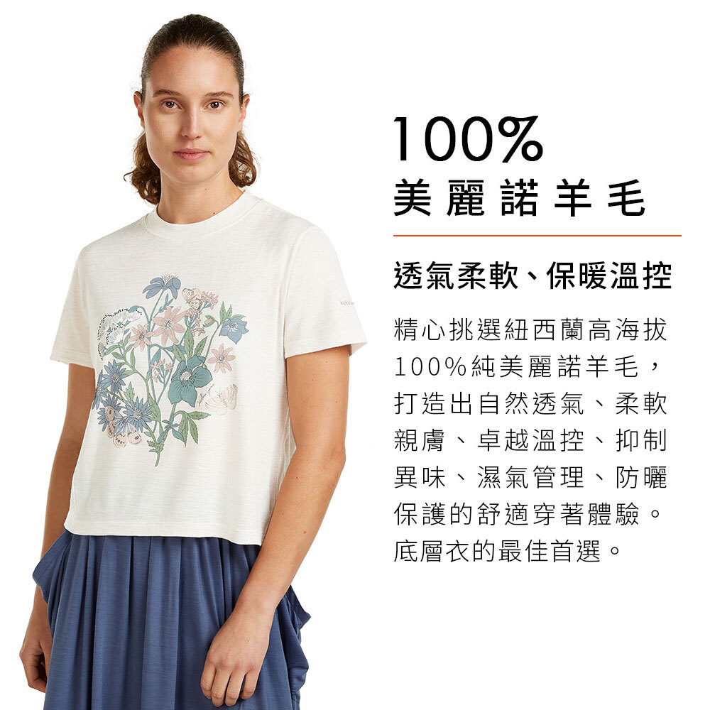 icebreaker 女 Tech Lite 圓領短袖短版上衣(紐西蘭花卉)-150