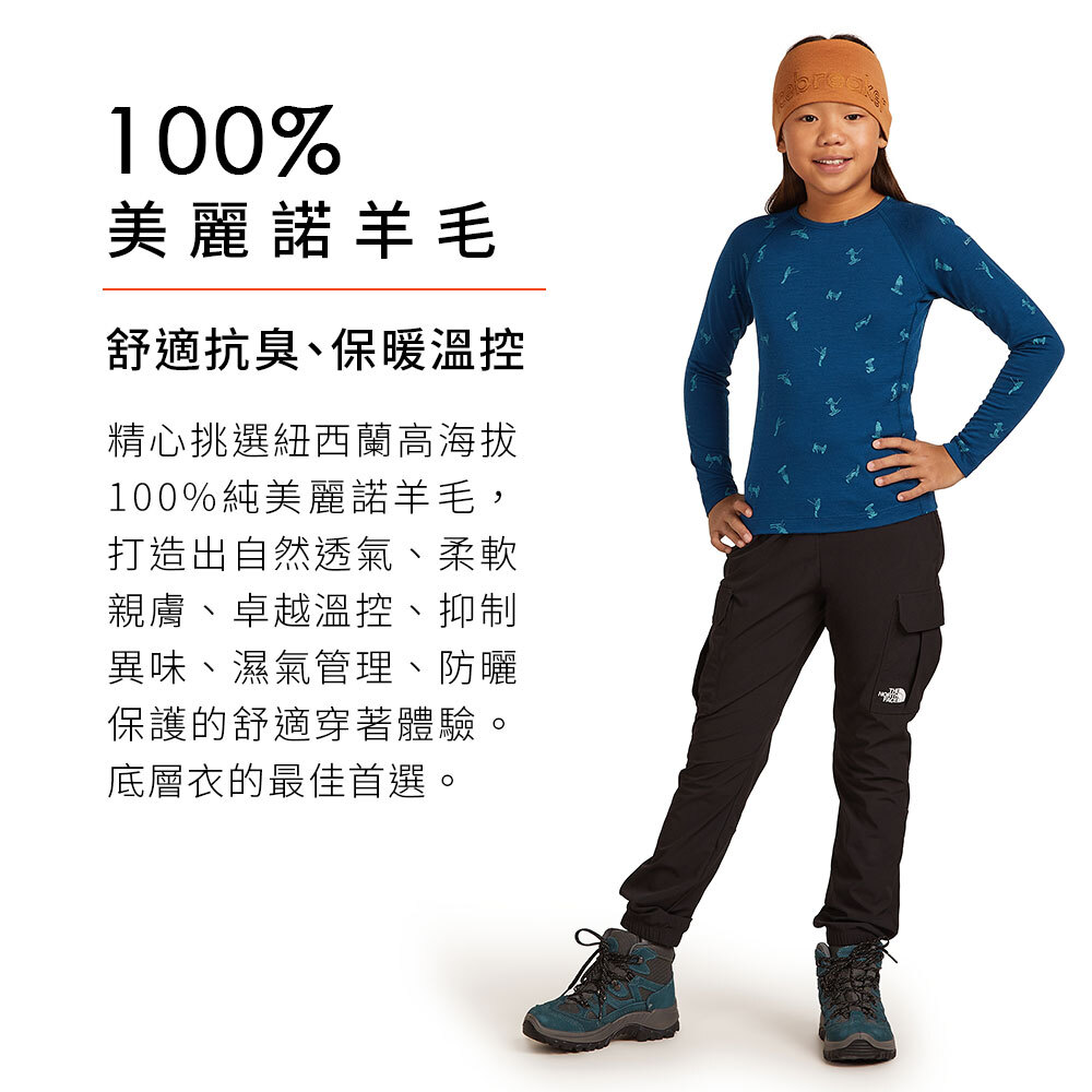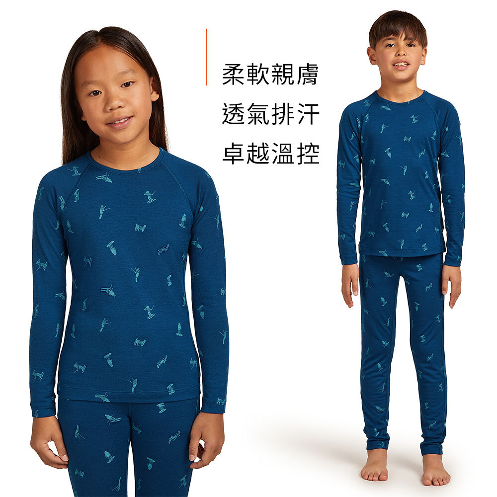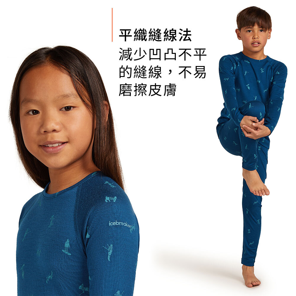 icebreaker 兒童 Oasis 圓領長袖上衣 (滑雪日記)-200
