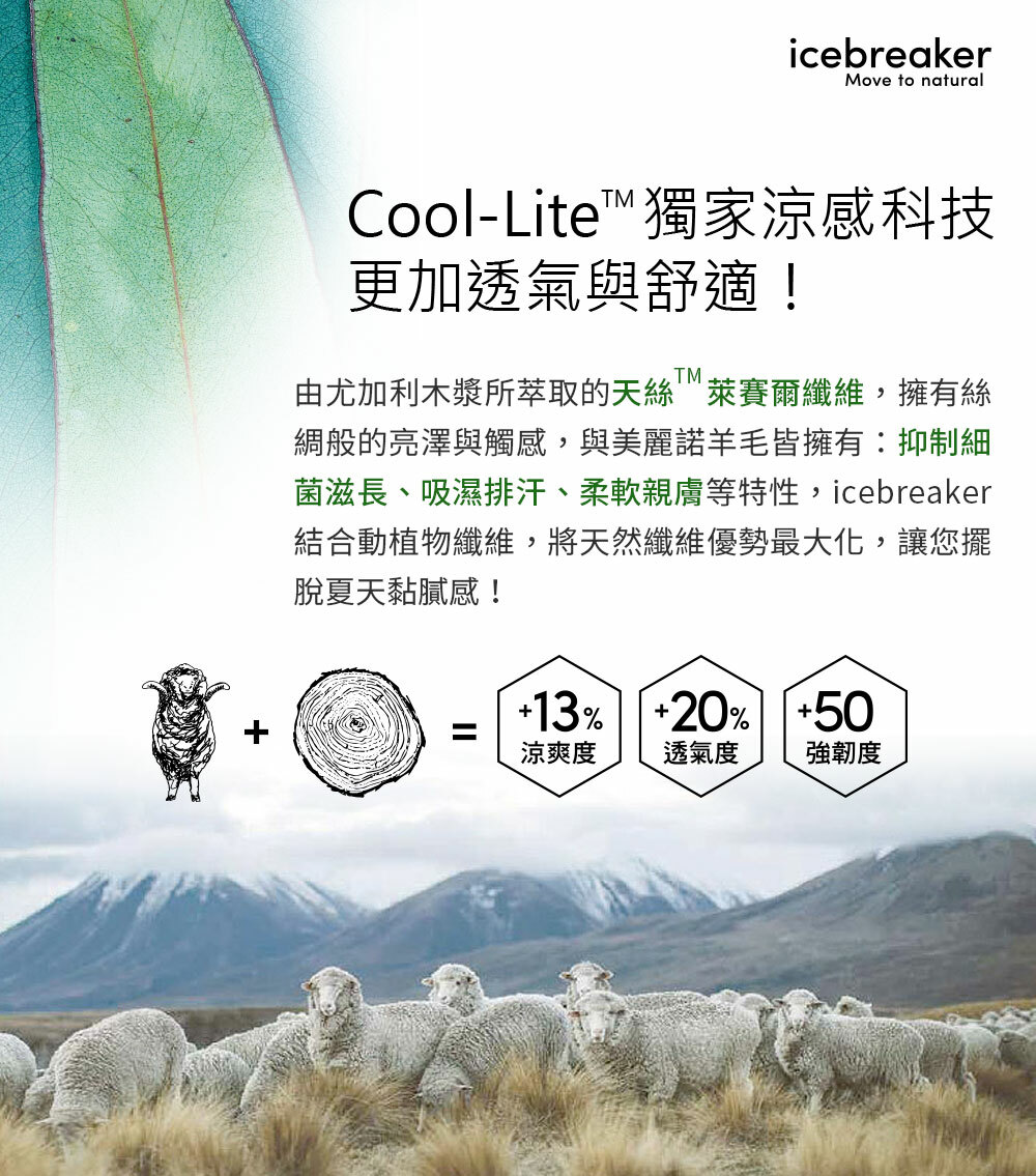 icebreaker 美麗諾羊毛的八大優點:溫控能力 、濕氣管理、抑制異味 、紫外線防護 、可生物分解 、彈性抗皺 、阻燃效果 。