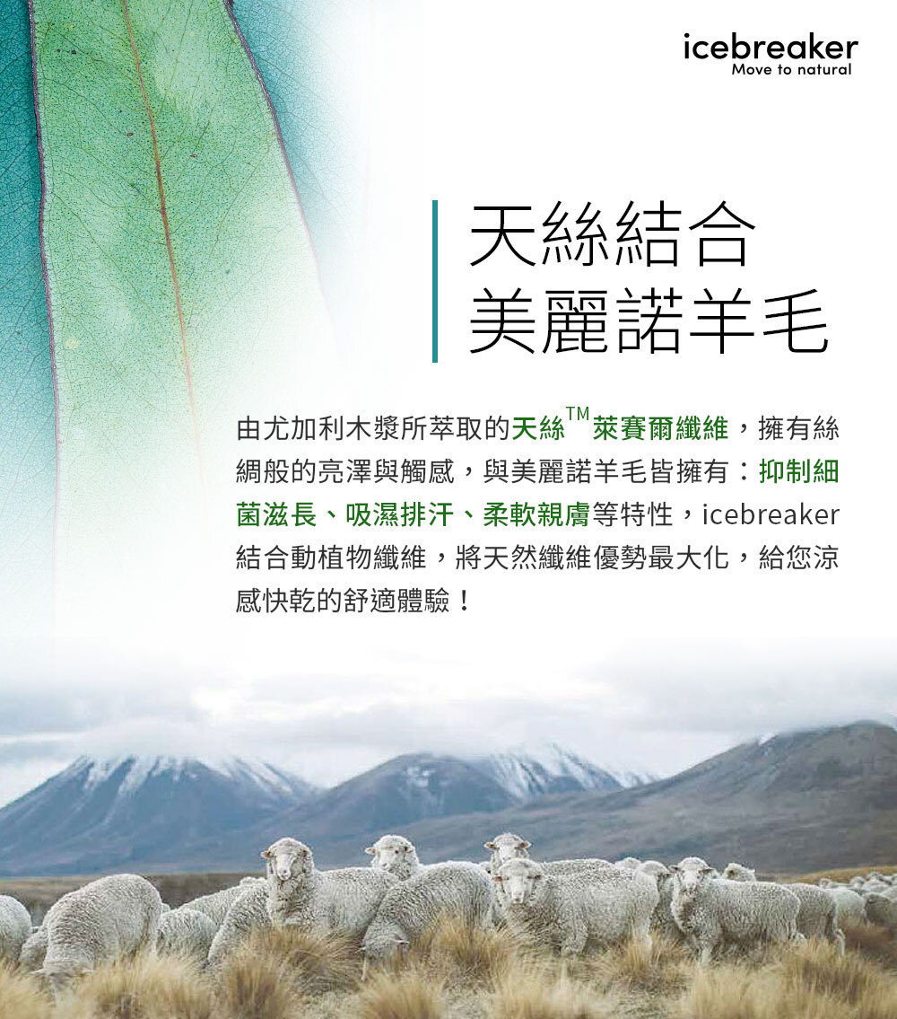 就是因為如此執著於品質,icebreaker 的產品不但透氣性佳,還能夠適時調節體溫防止失溫;而不同於傳統羊毛的纖維尺寸,纖細的美麗諾羊毛讓衣服重量更輕了,刺癢的感覺也不見了!