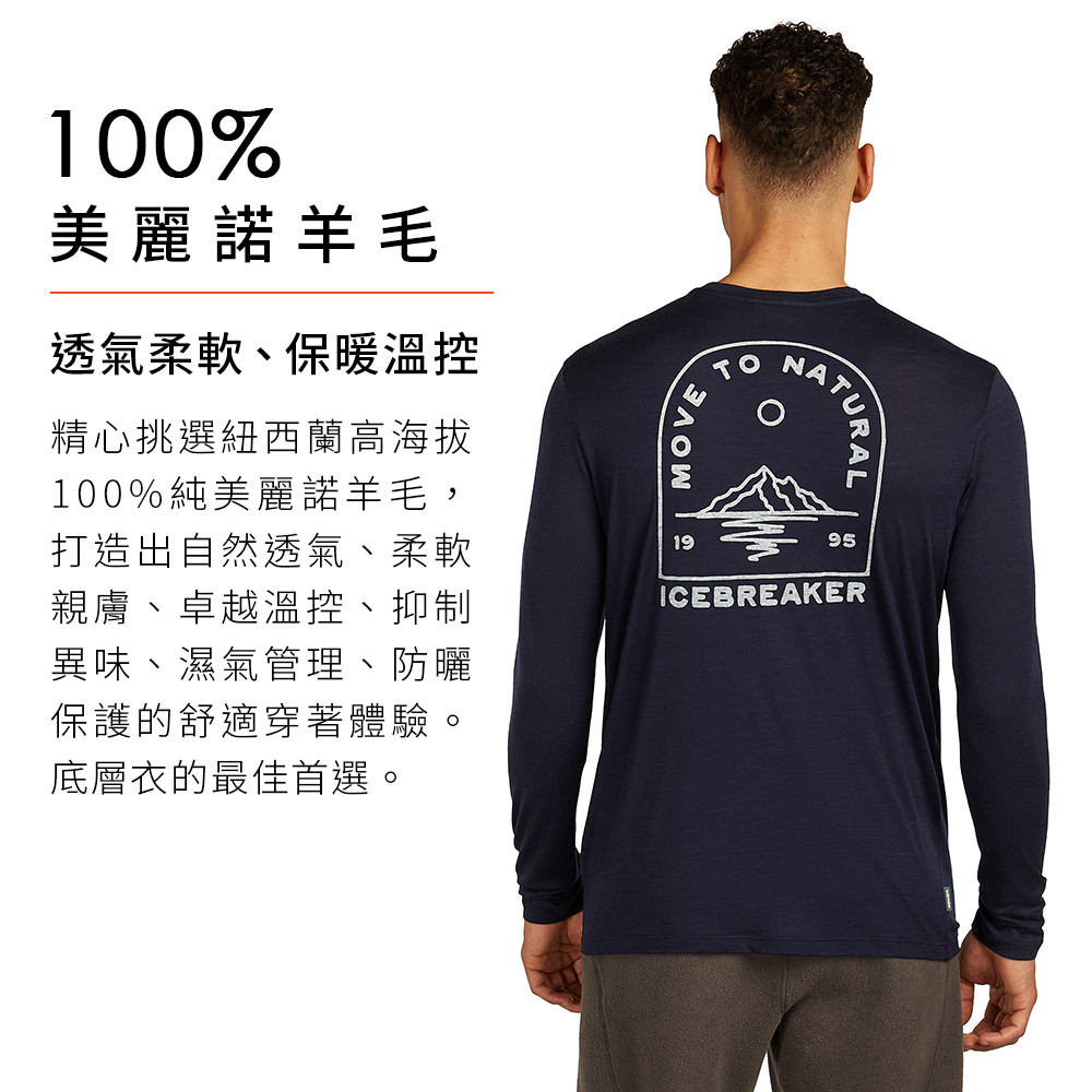 icebreaker 男 Tech Lite 圓領長袖上衣 (山行之路)-150